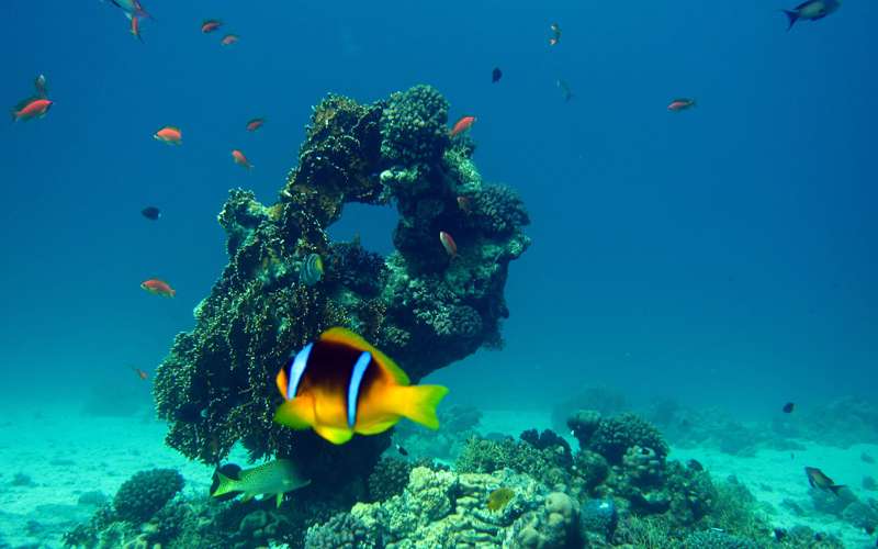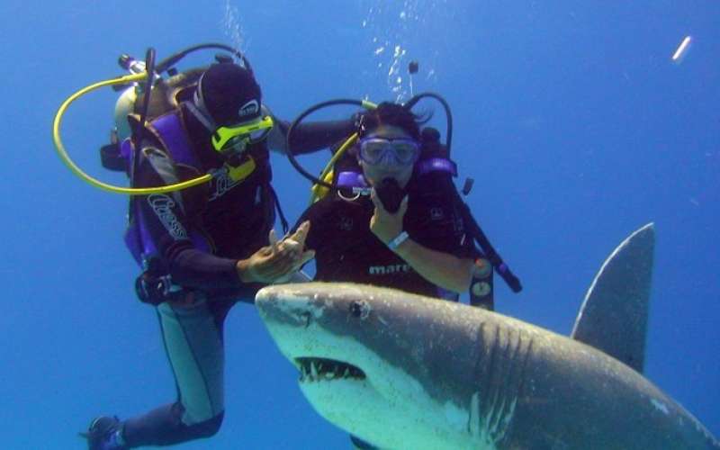 Most a rögzített hajóról merülünk és balra indulunk. Rövidesen elérjük az egyik legérdekesebb, vagy talán legkülönlegesebb látnivalót, a mûanyag cápát. A cápa védelmi program keretében hozta létre a HEPCA pár évvel ezelõtt. Haladunk tovább az elsõ nagy koralltoronyig. A homokban egy megtermett trigger alakít ki magának fészket, kikerüljük, nehogy megharagudjon ránk. Már többször volt példa arra, hogy ívási idõszakban támadta és harapta az uszonyunkat. Nem túl kellemes élmény a harcias lényt távoltartami. Megkerüljük a kis zátonyt és egy kisebb denevérhal rajjal találkozunk. Egy különálló kisebb agancskorall tetején egy közepes sünhal lebeg kicsi uszonyaival viccesen lapátolva. Néhány picasso hal kergetõzik elõttünk, majd eltûnnek a látómezõnkbõl. Megkerüljük a másik tornyot is és többnyire nem változik a látvány, színes halakból továbbra is kavalkád vesz körül bennünket. Nem véletlen, hogy más néven akváriumnak hívják ezt a zátonyt. Közel húzódunk a fõzátonyhoz és indulunk visszafelé. Nagy bemélyedések vannak a falban és mindegyikben vagy a sárga halak, vagy a dülledtszemû halak hatalmas raja várakozik élére állva. A hajó alatt lebegve még egy nagy muréna is beúszik a képbe kígyózó mozgásával, majd lassan eltûnik a távolban.