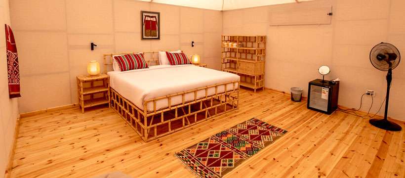 A 25 m2-es "Királyi sátrak" a tengerparton találhatóak és méltán a legnépszerűbb szállásforma. A "szobák" igényes bambusz bútorokkal rendelkeznek a megfelelő kényelemhez. A szobák parkettázottak, naponta takarítják őket és rendes ajtókkal rendelkeznek a tisztántartás miatt :-). Ezen kívül ventillátorral, éjjeli lámpákkal, hűtőszekrénnyel, fotelekkel, illetve a bejárat előtt kiülőkkel és asztallal is rendelkezik a szoba/sátor. A sátrak mögötti hatalmas vizesblokkot használják a vendégek, melyet 30 percenként takarítanak. A királyi sátrak elhelyezkedése az egyik legközelebbi a közös helyszínekhez, bár, étterem, merülőhely, felszerelés tároló, stb. További képek a Királyi sátrakról