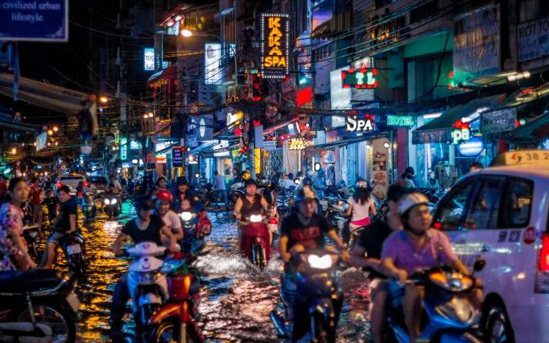A "kistigris" - ahogyan Vietnámot nevezik - szédületes tempóban halad elõre. Az éves gazdasági növekedés 10 százalék körüli. Tíz esztendõvel ezelõtt még a bicikli volt a legnépszerûbb jármû, manapság mindenki motorra váltott. Több millió robogó és kismotor rója az utcákat. Teljes a káosz: eszeveszetten cikáznak minden kis rést, egérutat megtalálva, közben pedig nyomják a dudát, mintha muszáj volna. Ember legyen a talpán az a turista, aki az elsõ napokban le mer lépni a járdáról. De csak lépni kell bátran, s a motoros-áradat az embert kikerülve tülköl tovább.